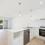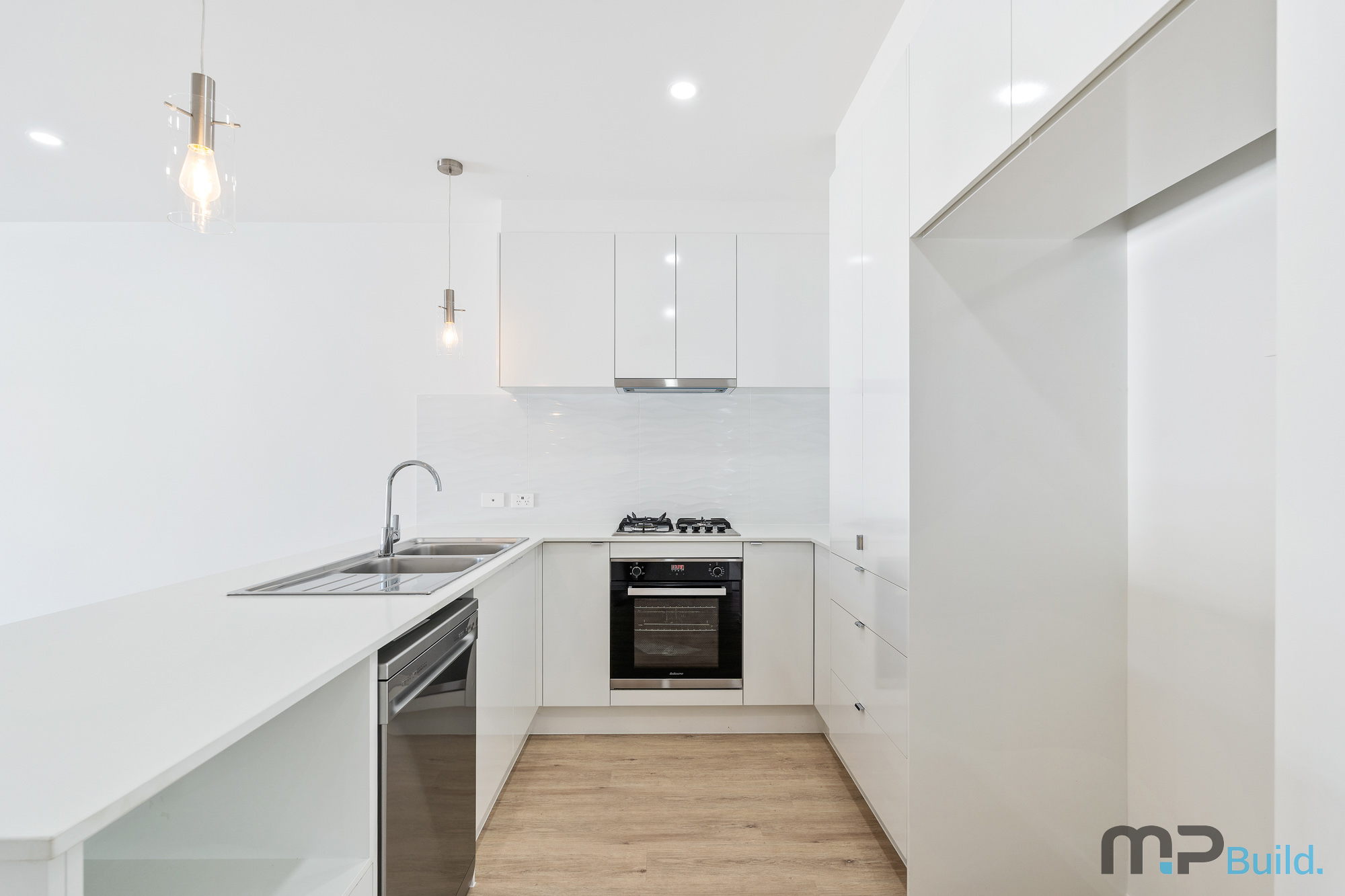– Stunning kitchen with stone bench top, stainless steel appliances and ample storage. Complete with hanging pendant lighting.